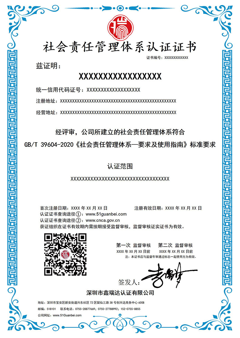 社会责任管理体系认证证书