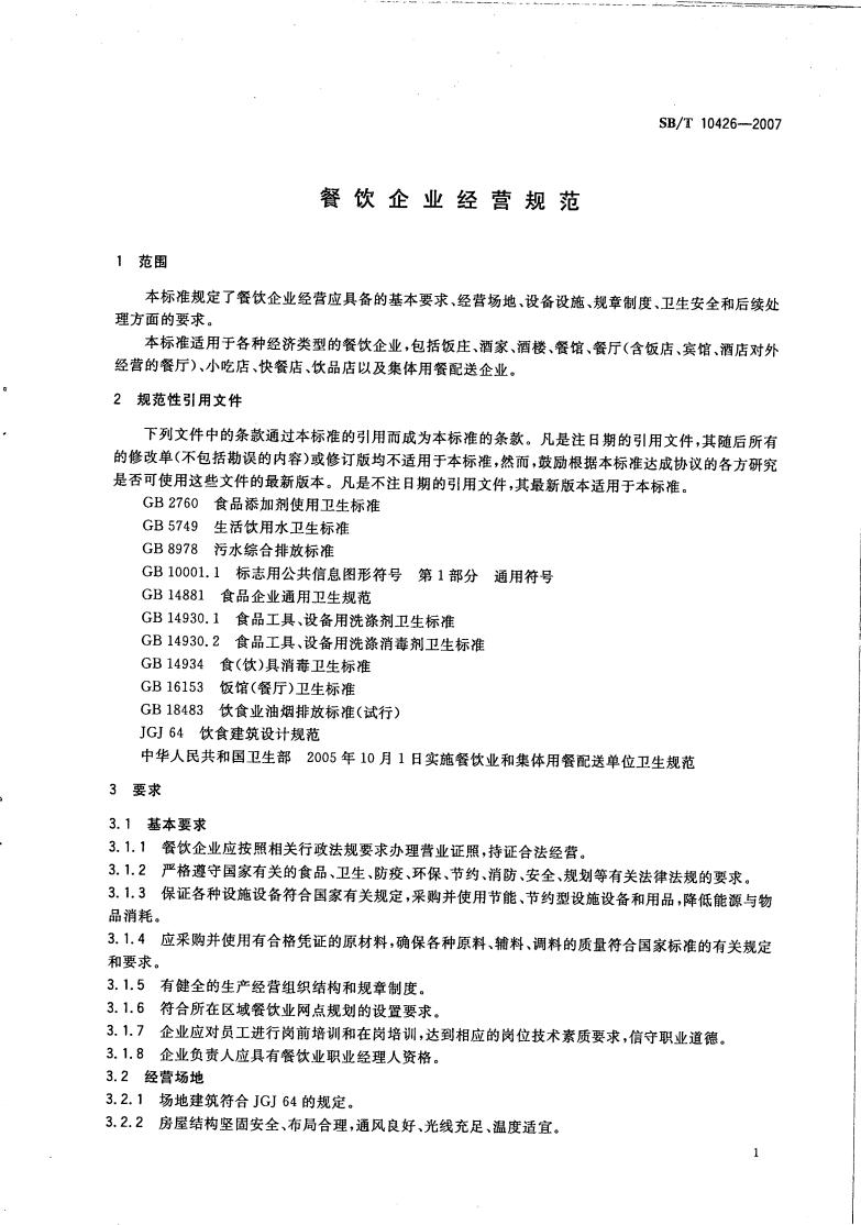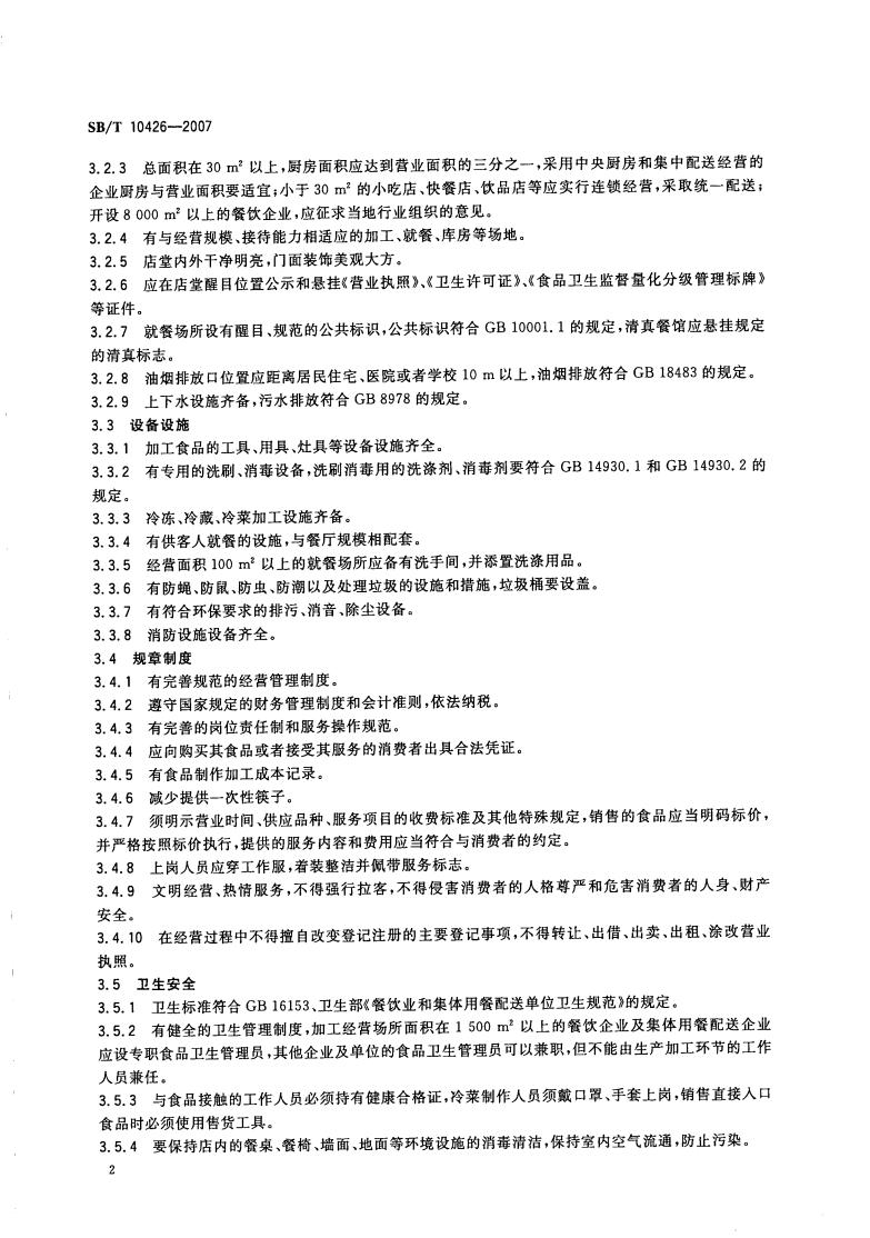 SB/T 10426-2007 餐饮企业经营规范