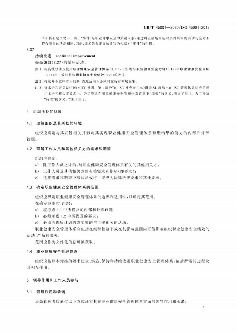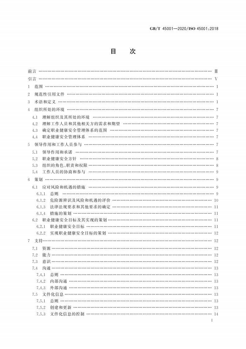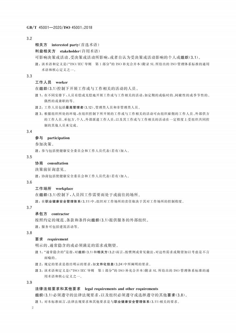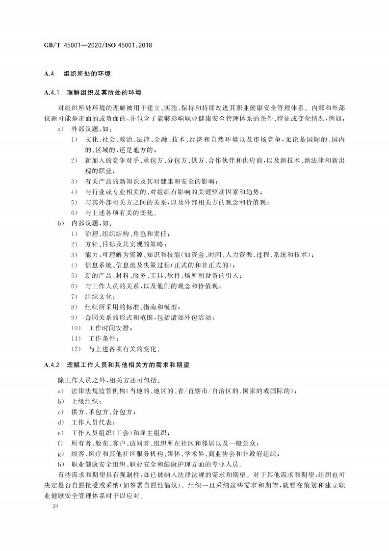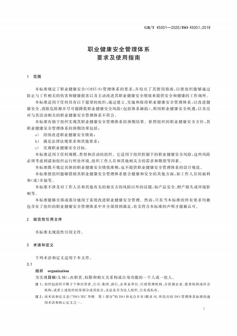 GB/T 45001-2020 职业健康安全管理体系 要求及使用指南