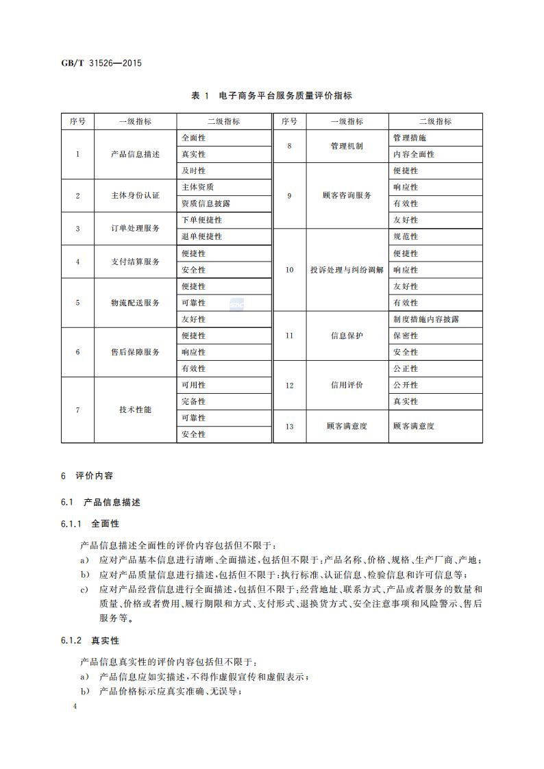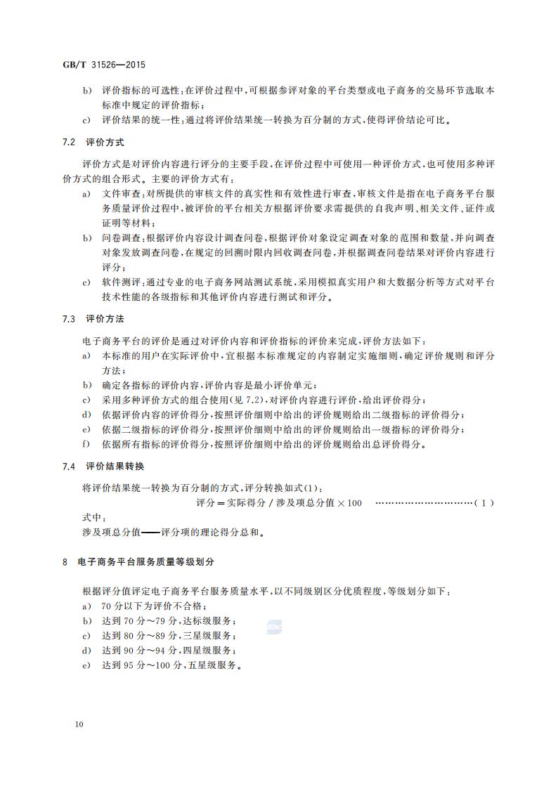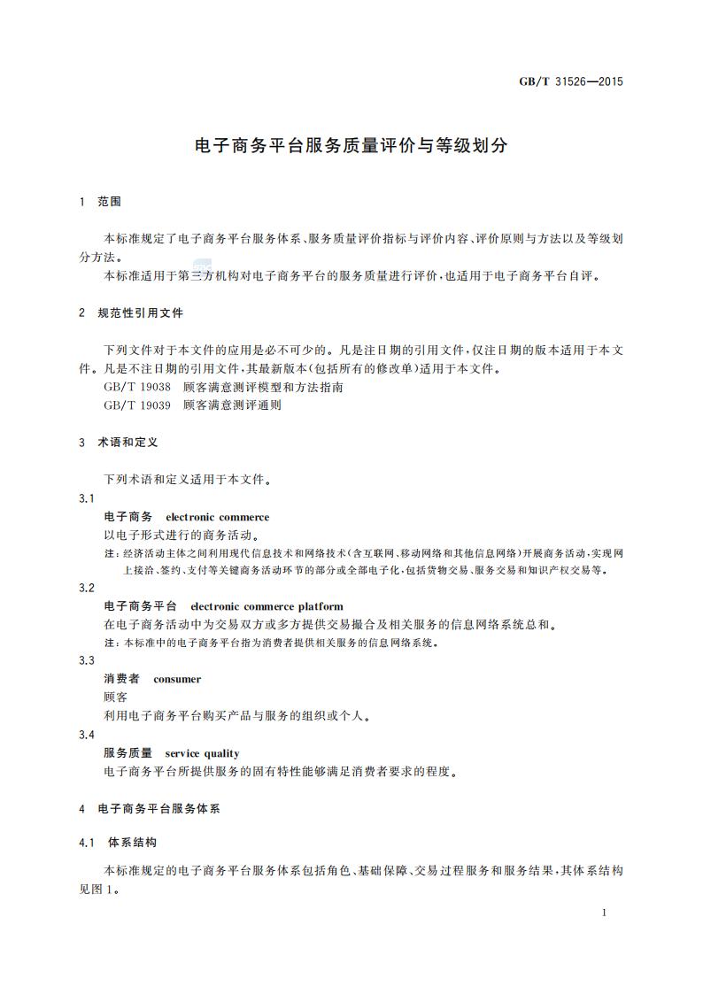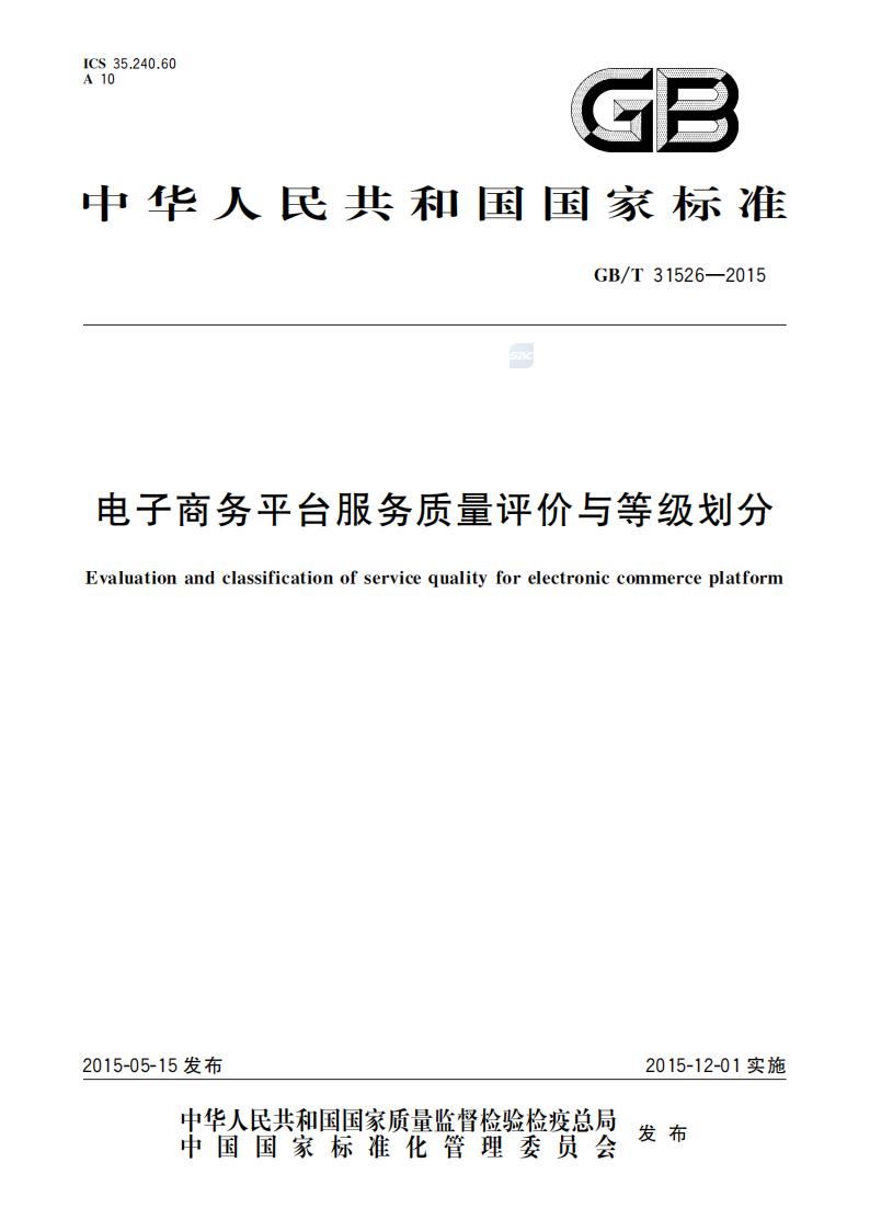GB/T 31526-2015 电子商务平台服务质量评价与等级划分