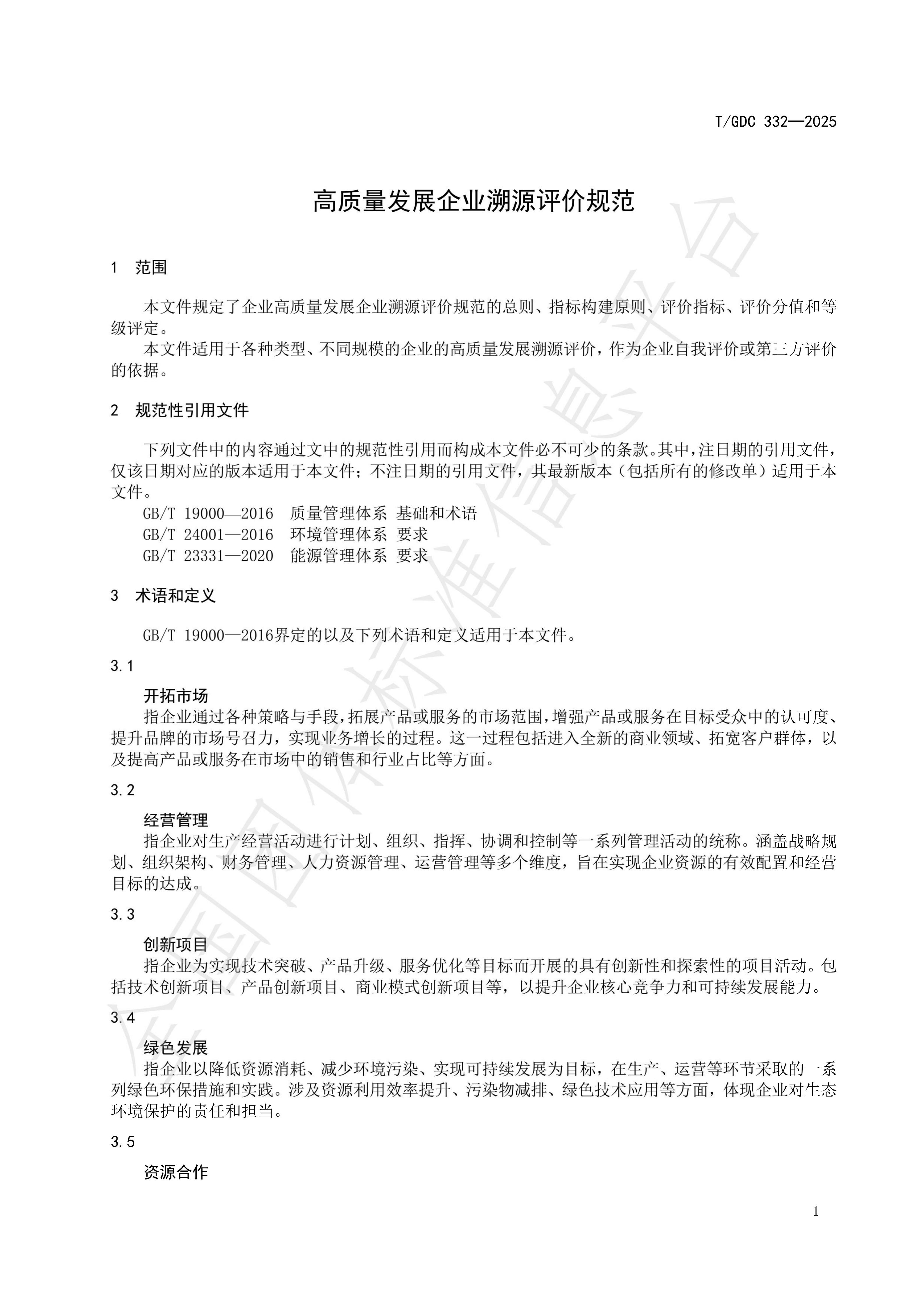 T/GDC 332-2025 高质量发展企业溯源评价规范
