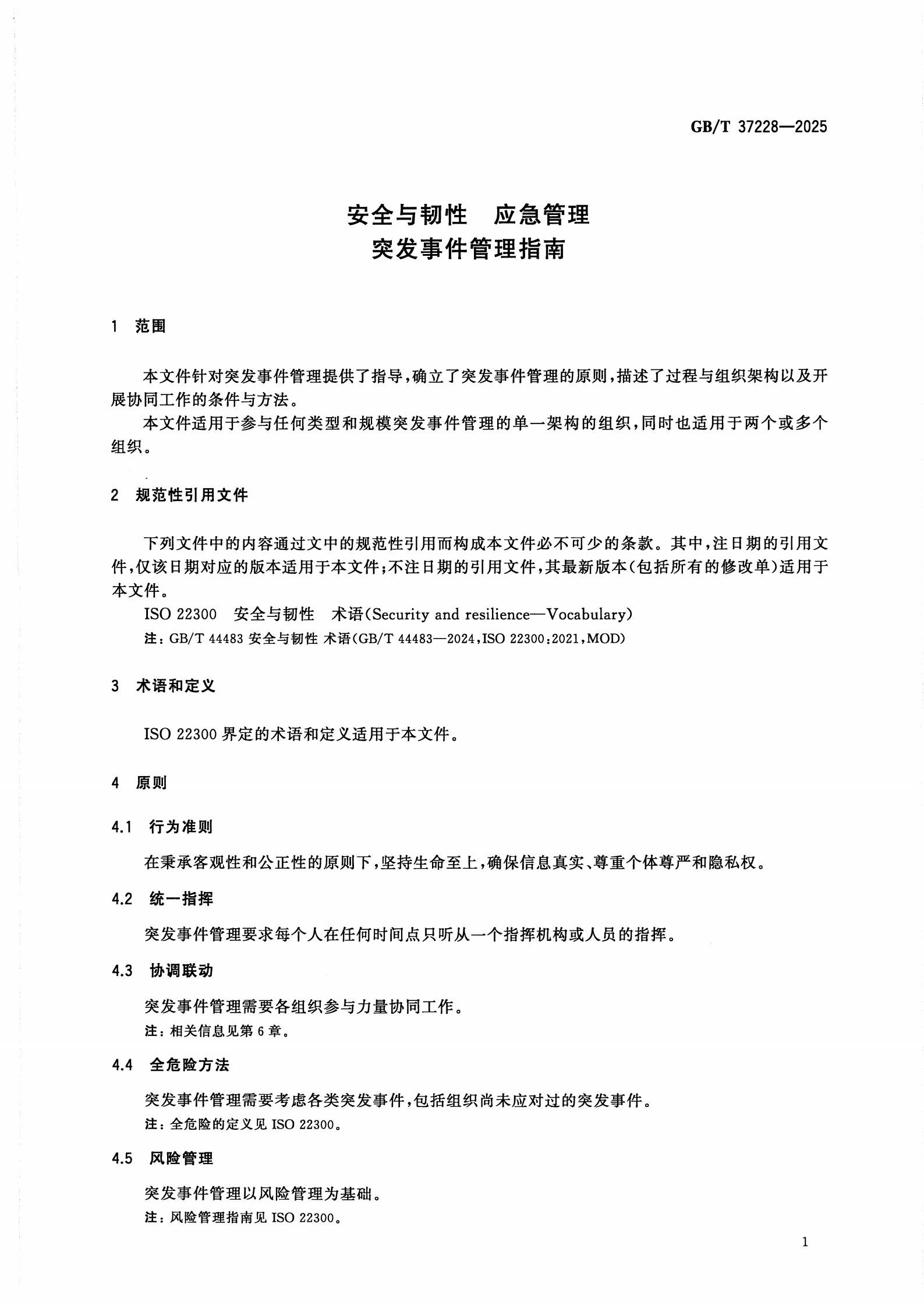 GB/T 37228-2025 安全与韧性 应急管理 突发事件管理指南