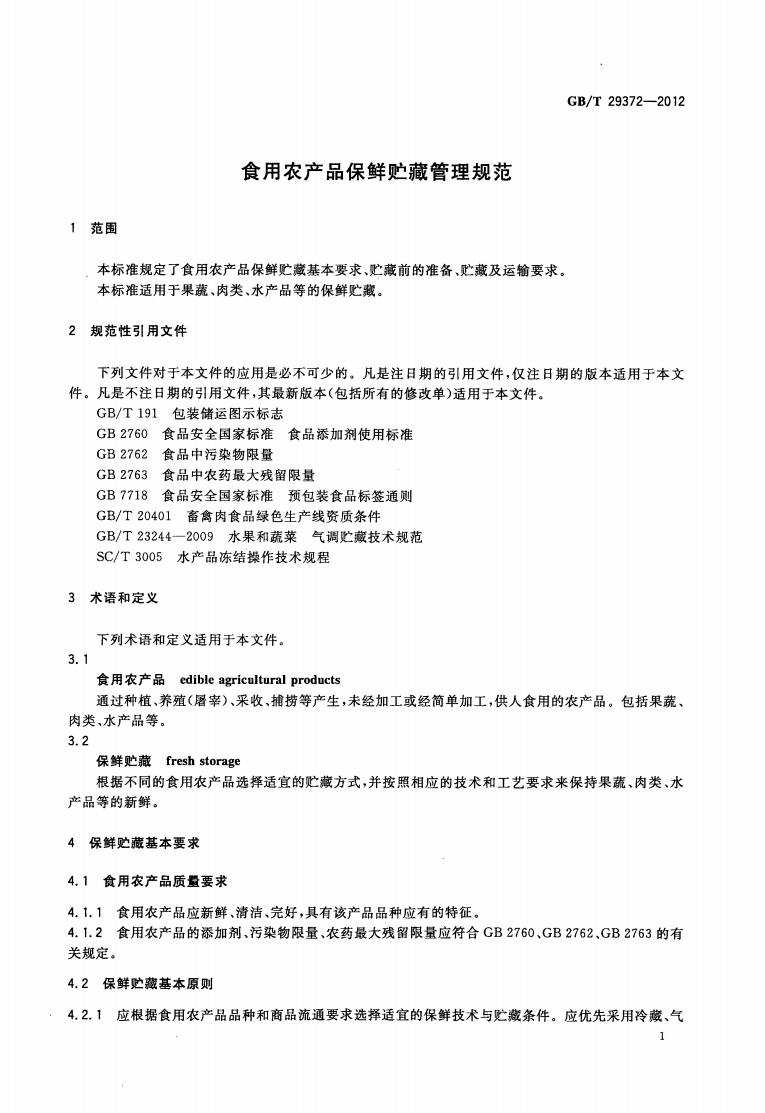 GB/T 29372-2012 食用农产品保鲜贮藏管理规范(OCR)